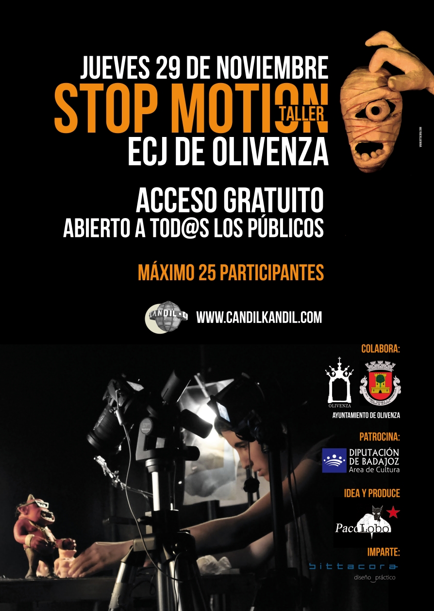 El jueves 29 de Noviembre impartimos en el ECJ de Olivenza un taller de stop motion Taller de Stop Motion Jueves 29 de Noviembre ECJ de Olivenza Acceso gratuito abierto a todos los públicos (Máximo 25 participantes)